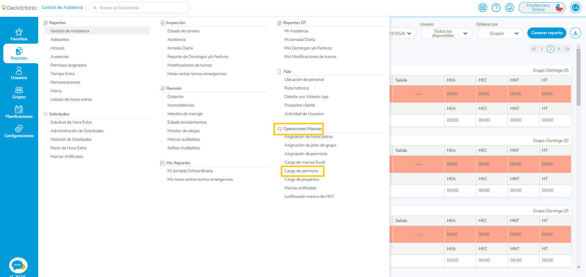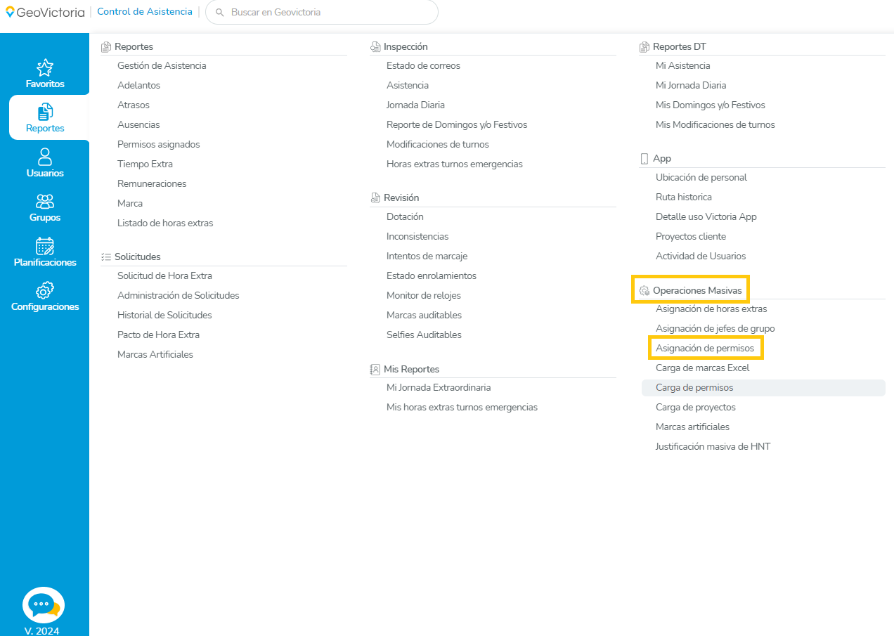 2.-  Operaciones Masivas 🡺 Carga de permisos.