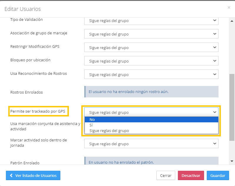 - Sobre la opción de Permitir seguimiento por GPS seleccionar la opción deseada.