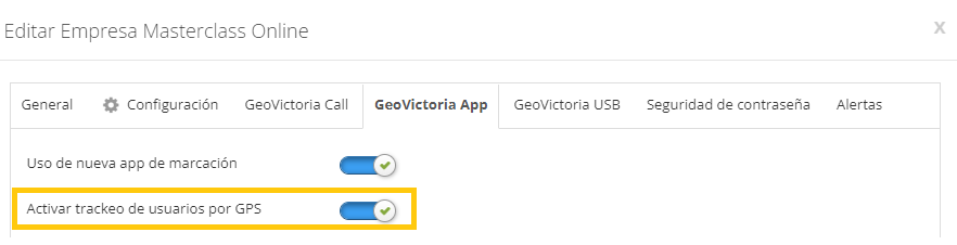 - En el apartado de configuración de empresa dirigirse a la pestaña GeoVictoria APP.