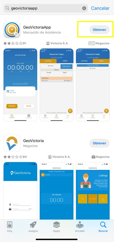 2. Buscar la aplicación con nombre GeoVictoria