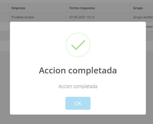 Luego de confirmar la acción se mostrará el resultado de la misma: