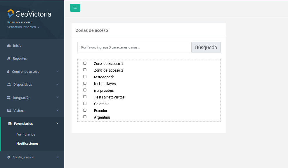 Aquí podemos añadir y quitar a los usuarios designados para cada zona.