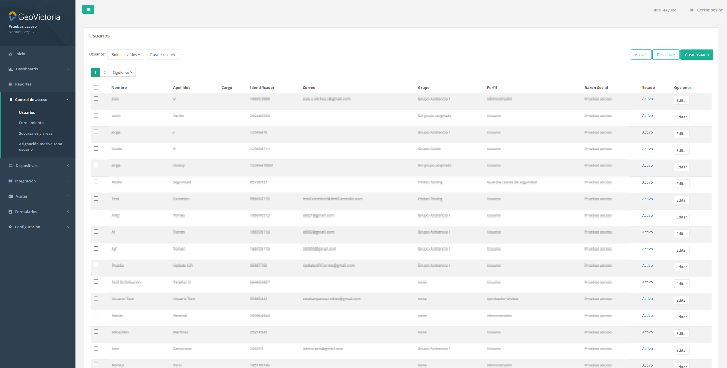 • Activar usuarios
