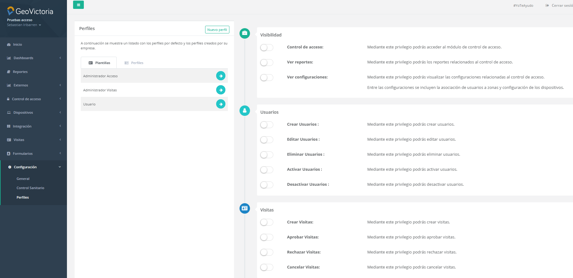 Es posible configurar crear y configurar perfiles para poder entregar distintos privilegios dentro del portal de acceso a los usuarios que sean necesarios.