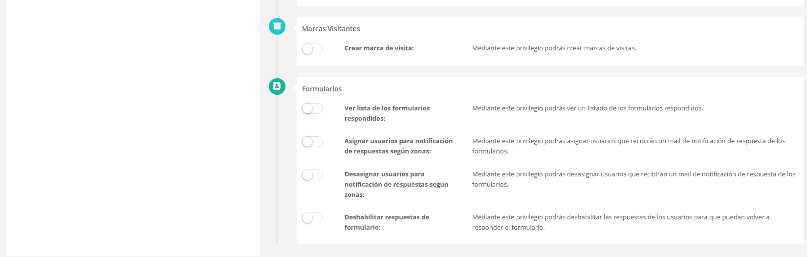 Asignar usuarios para notificación de respuestas según zonas: Mediante este privilegio podrás asignar usuarios que recibirán un mail de notificación de respuesta de los formularios.