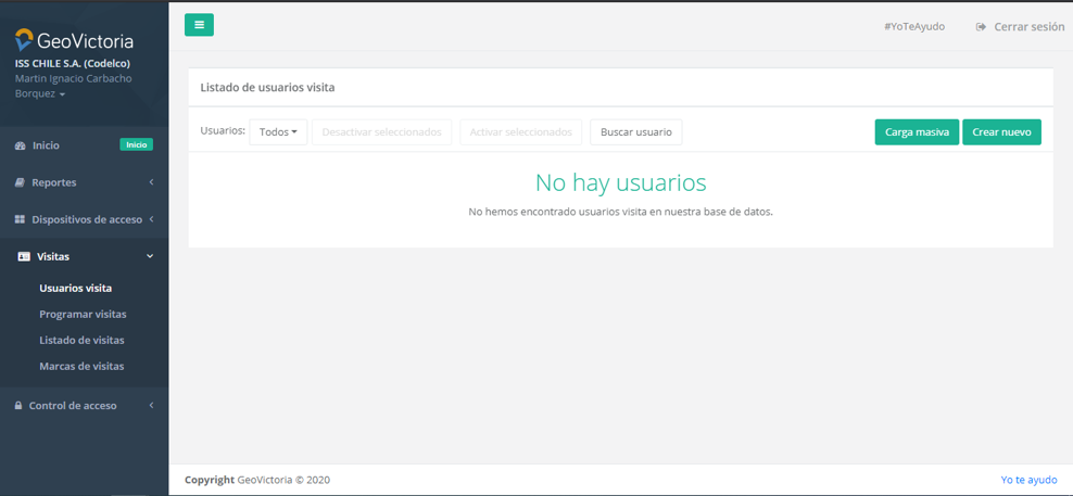 Una vez echo esto, nos encontraremos en la pantalla de inicio del sistema de control de acceso de GeoVictoria, como podemos observar en la siguiente imagen: