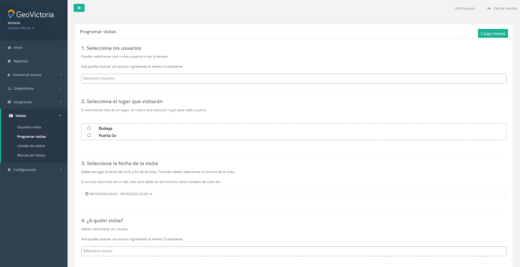 - ¿A quién visita?: Se puede buscar a un usuario perteneciente a la empresa, quien servirá como anfitrión