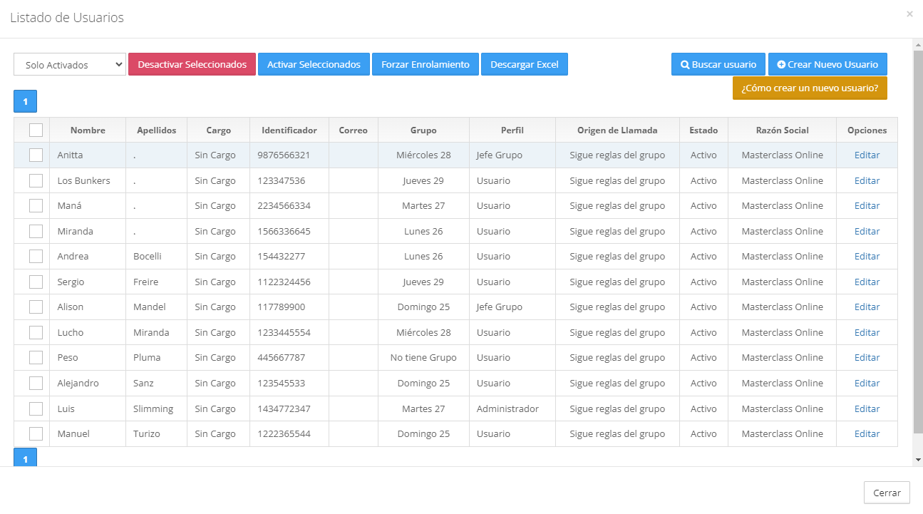 Para re-enrolar a los usuarios, es necesario que desde el listado de usuarios, eliminemos o forcemos el enrolamiento previo de las huellas. Para ellos debemos seguir la siguiente ruta: